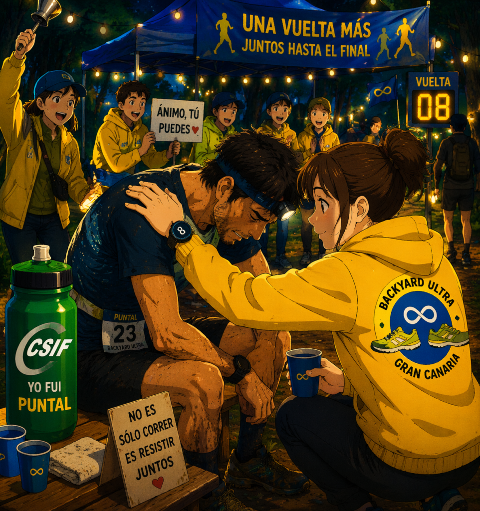 La Gran Canaria Backyard Ultra no se construye con medallas, sino con manos que montan, voces que animan, y miradas que sostienen a quien está a punto de rendirse.